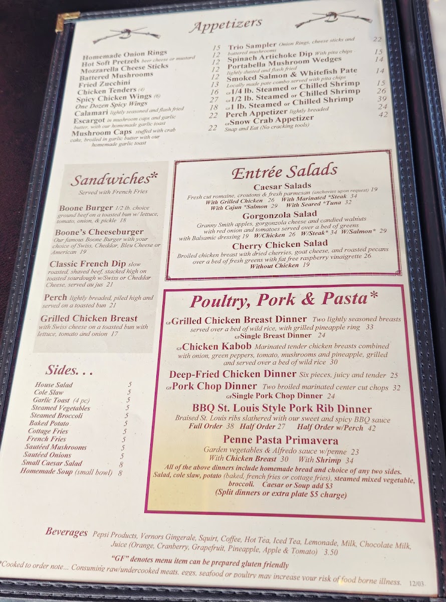 This straightforward yet fulfilling menu reflects Boone’s welcoming atmosphere, where the focus is on well-prepared food, consistent service, and a setting that invites you to savor the moment at your own pace.