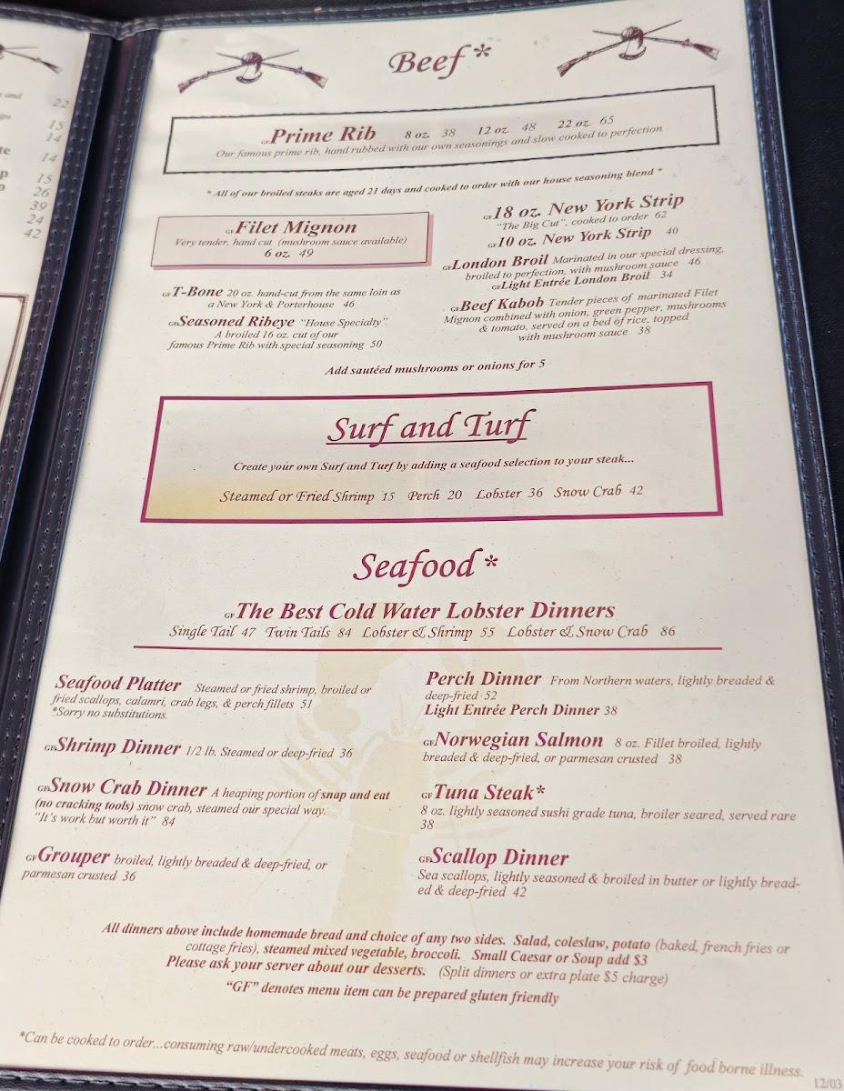 Whether you're settling in for a leisurely dinner or enjoying a weekend treat, the selection highlights include rich prime rib dinners, seasoned ribeye steaks, and generous seafood platters. These meals pair easily with sides like loaded baked potatoes, steamed broccoli, and fresh house salads, making each plate feel thoughtfully balanced without complexity.